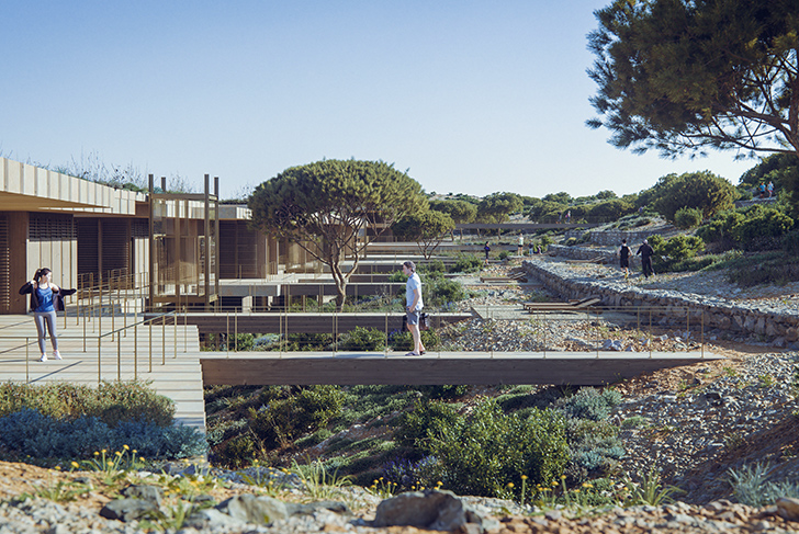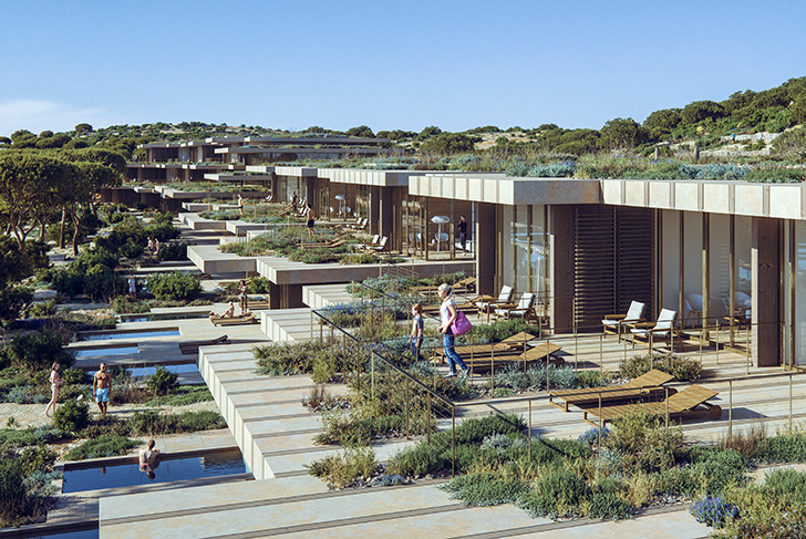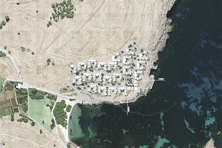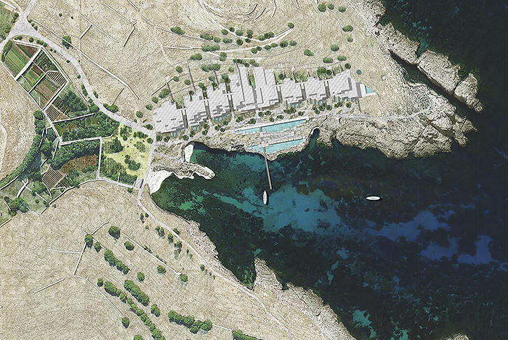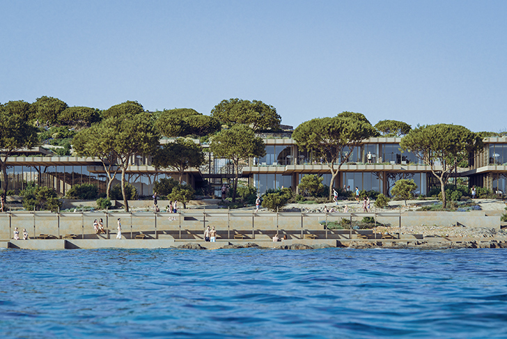 Through the development of two sites, the hotel, and the village, located in two distinct bays, our project intends to reconstitute the “skin” of the island by making its proper vegetation and rocks live again.