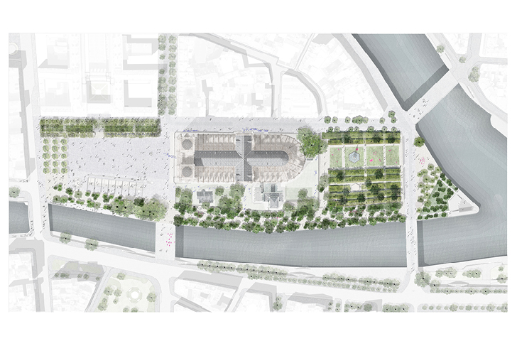 MDP Michel Desvigne Paysagiste mandataire / Grafton Architectes / H2o Architectes du patrimoine / Ingerop, BET VRD / Casson Mann, architectes d’intérieur et scénographes d’exposition / Transsolar, BET environnement / Urban Eco, écologues, études environnementales, plantations / Chronos, Etudes de sûreté sécurité / BMF, économie du bâtiment / 8.18, concepteurs lumière / Des Signes, graphistes, signalétique / Vraiment-Vraiment, accompagnement du temps des études et du chantier / Mosaic, sciences participatives